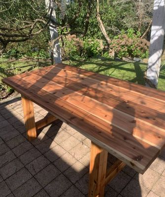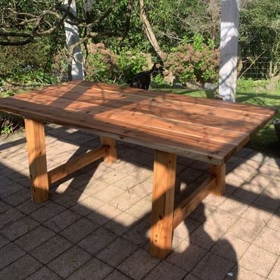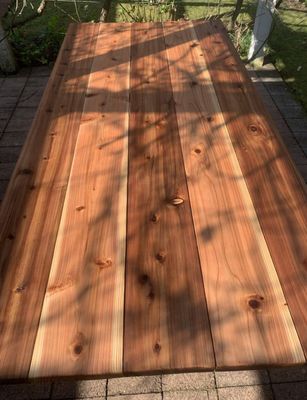 Crafted from premium New Zealand cedar, this handcrafted outdoor dining table brings natural warmth and durability to any patio, deck, or garden setting. The rich grain patterns and warm reddish-gold tones highlight the beauty of solid cedar, while the sturdy, timeless design ensures long-lasting performance in all seasons.
