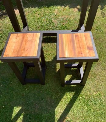 Enhance any indoor or outdoor space with this modern pair of industrial-style stools. Each stool features a thick, durable black frame paired with a warm, natural wood seat that highlights rich grain patterns for a premium look. Designed for versatility, these compact square stools work perfectly at kitchen bars, patio counters, café spaces, workshops, and small living areas.